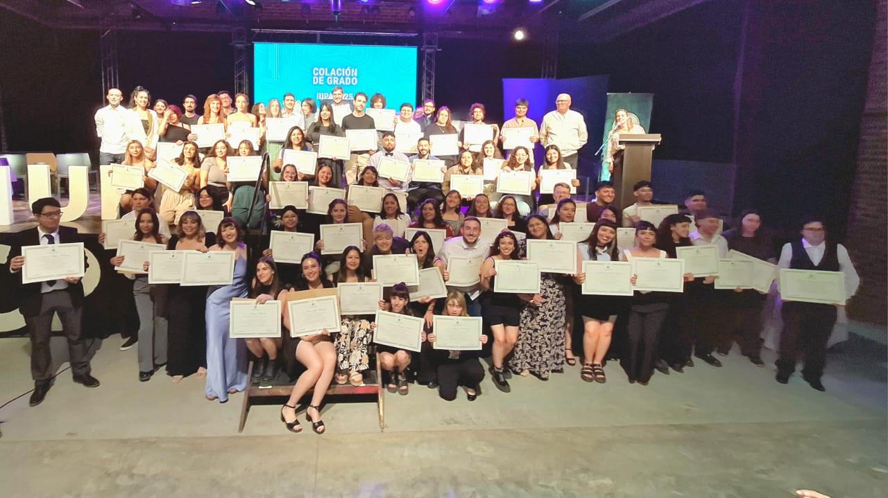 El Instituto Universitario Patagónico de las Artes (IUPA) despidió el año académico con la colación de 82 nuevas graduadas y graduados de las carreras de Música, Artes Audiovisuales, Arte Dramático, Artes del Movimiento y Artes Visuales, quienes alzaron sus diplomas con orgullo frente a la comunidad universitaria, familia y amigos.